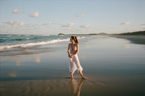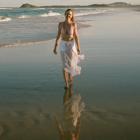 A sophisticated veil for the water's edge. Designed for the woman who moves fluidly between the water and the world.